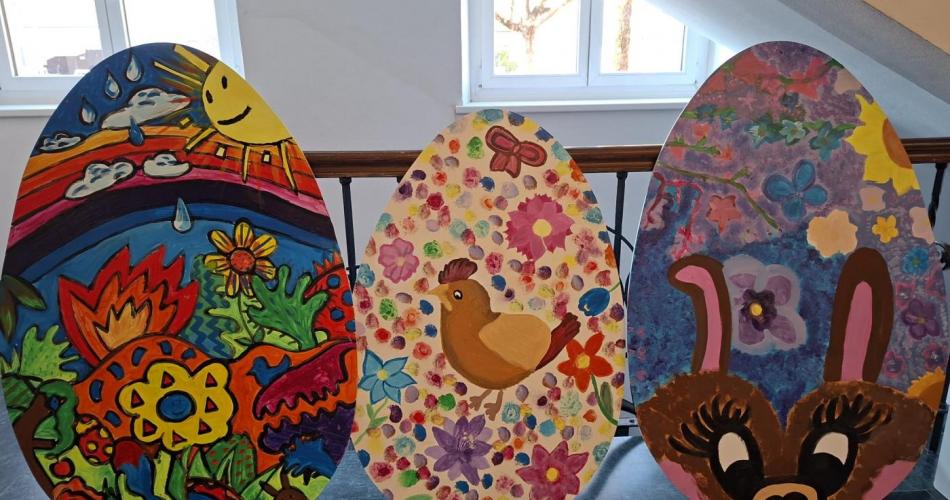 In der Osterhasenwerkstatt wurde es kreativ: Schüler:innen aus verschiedensten Klassen folgten der Einladung der Gemeinde und gestalteten gemeinsam bunte, riesige Ostereier. 🎨🥚