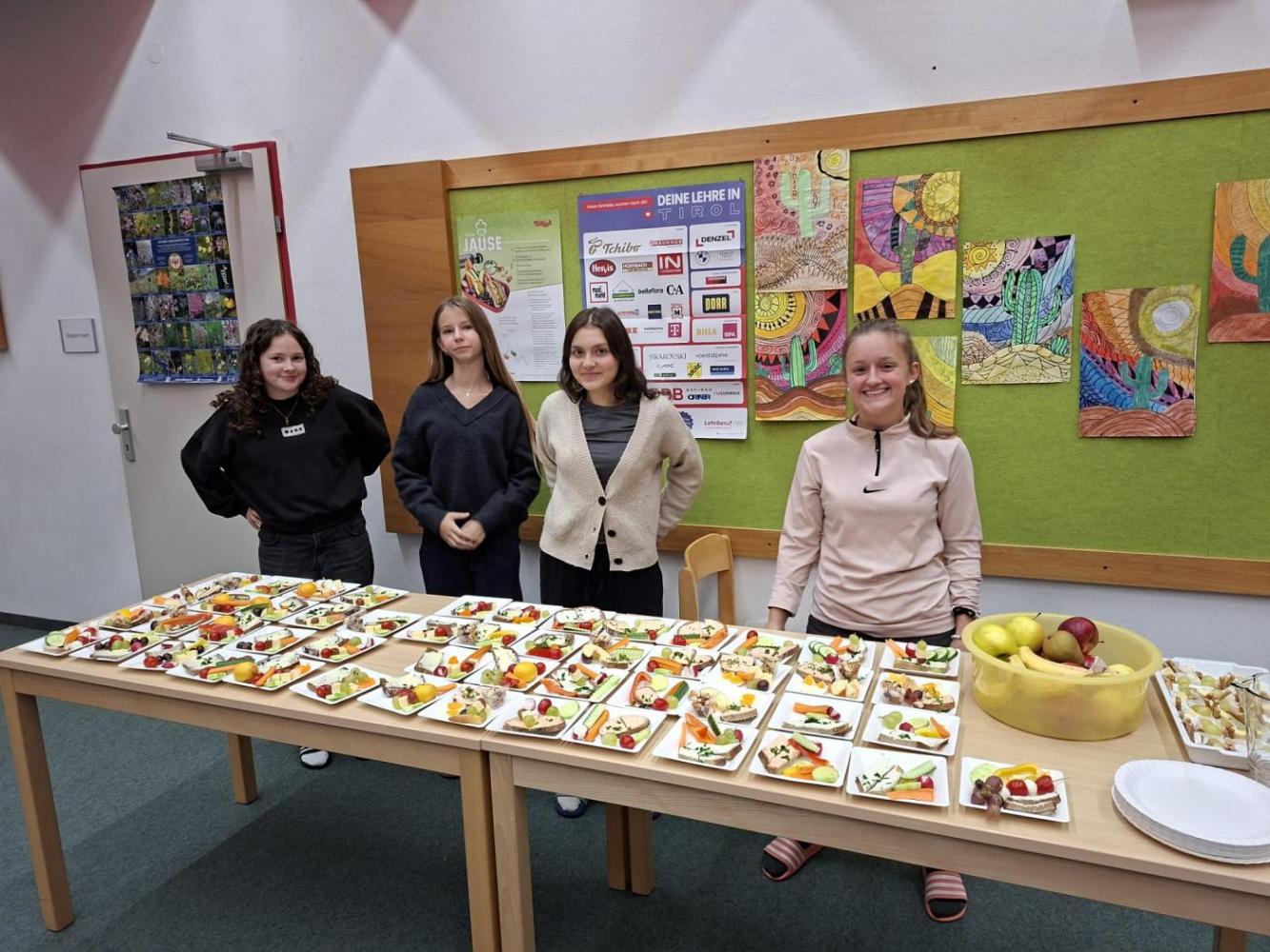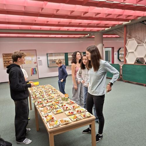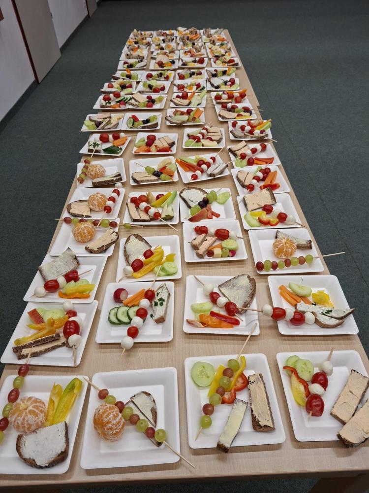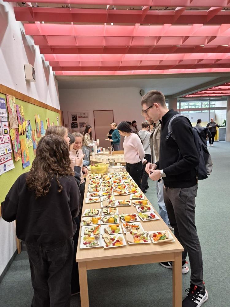 Nach dem Antrag im Schülerparlament startete am 13. Oktober die Klasse 4a erfolgreich mit der gesunden Jause. Das Buffet war köstlich, bunt und vielfältig – von frischem Obst und Gemüse bis hin zu liebevoll zubereiteten Snacks.